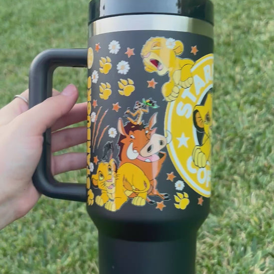 Termo negro con diseño estampado de el rey león. Por el momento tengo 1 disponible pero tomamos ordenes con anticipación si deseas el mismo diseño.
